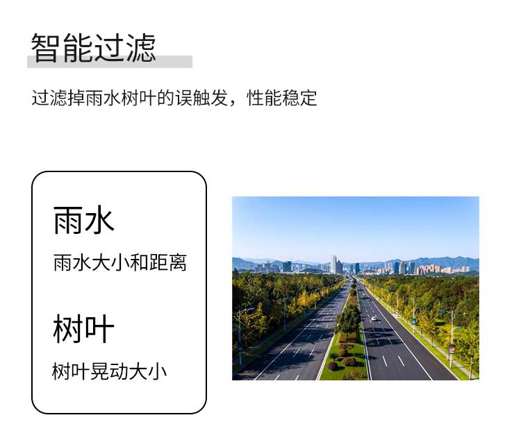 | 种类雷达 | 功能低功耗雷达模块过滤雨水树叶存在感应 |
